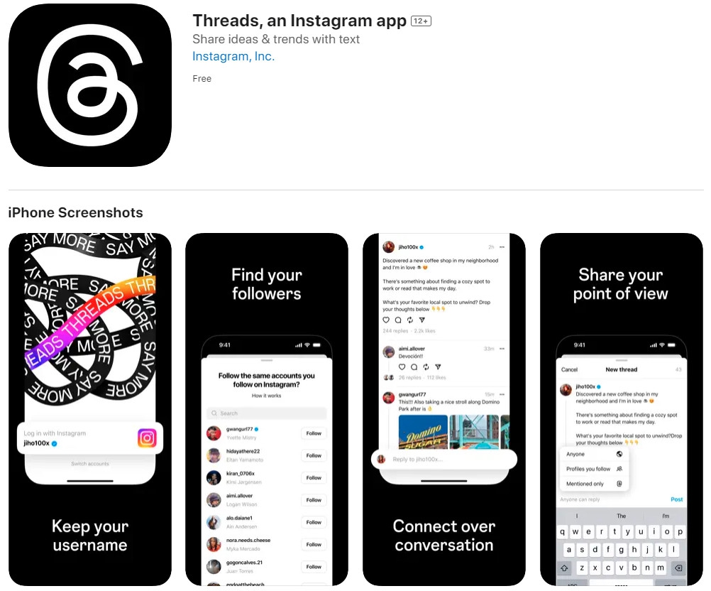 แอปพลิเคชัน Threads สามารถดาวน์โหลดมาใช้งานได้ฟรีจาก App Store และ Play Store
