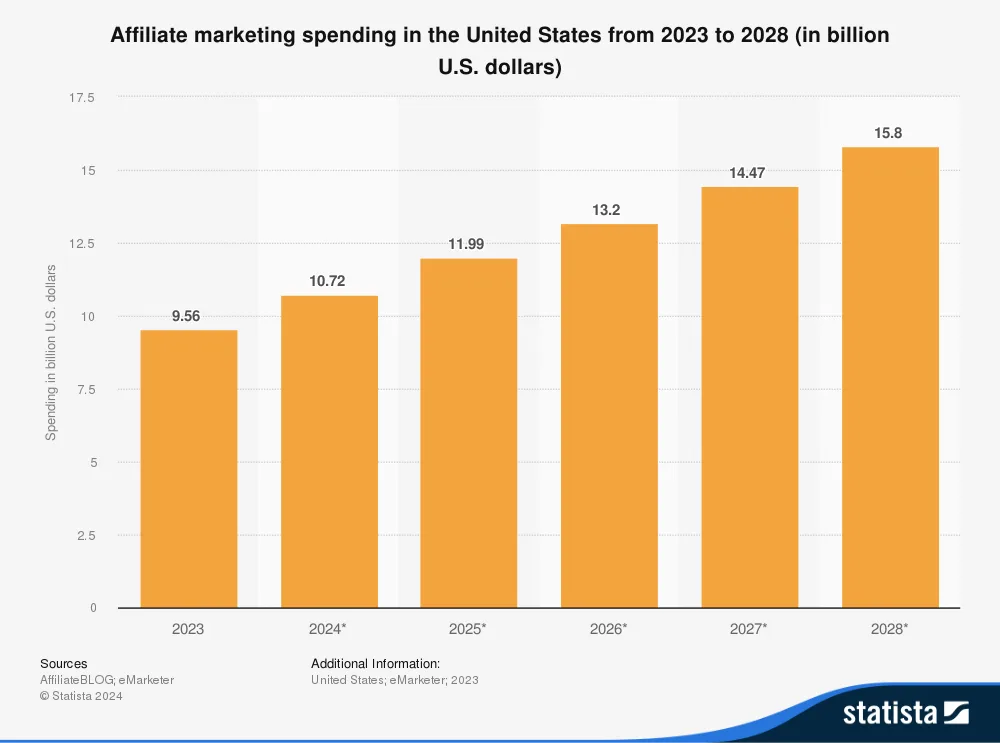 ตลาด Affiliate Marketing นั้นมีมูลค่ามหาศาลมาก จากผลสำรวจในปี ค.ศ. 2023 (พ.ศ. 2566) เฉพาะตลาดในประเทศ สหรัฐอเมริกามีมูลค่าถึง $9,560,000,000 (ประมาณ 330,804,661,836 บาท) มีการคาดการณ์ว่าในปี ค.ศ. 2025 (พ.ศ. 2568) จะขยายตัวเป็น $12,000,000,000 (ประมาณ 415,266,009,600 บาท) นั่นหมายความว่ายังมีที่ว่างอีกมากมาย ที่เปิดโอกาสให้คนที่สนใจเข้าไปมีส่วนร่วมในสงครามแปะลิงก์ได้